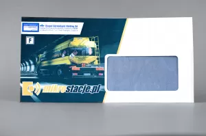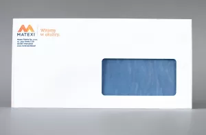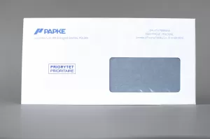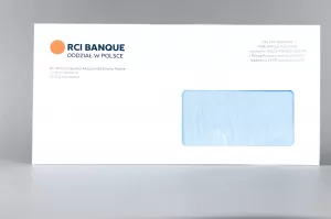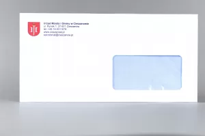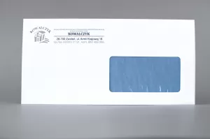 - Kopertę DL samoklejącą listową z paskiem samoprzylepnym, okienkiem prawym o gramaturze 80 g/m2 oraz dowolny kolorowy nadruk według konfiguracji.