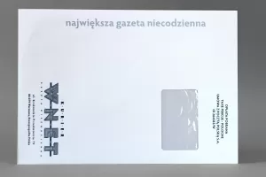 - Kopertę C4 samoklejącą aktową z paskiem samoprzylepnym, okienkiem prawym o gramaturze 90 g/m2 oraz dowolny kolorowy nadruk według konfiguracji.