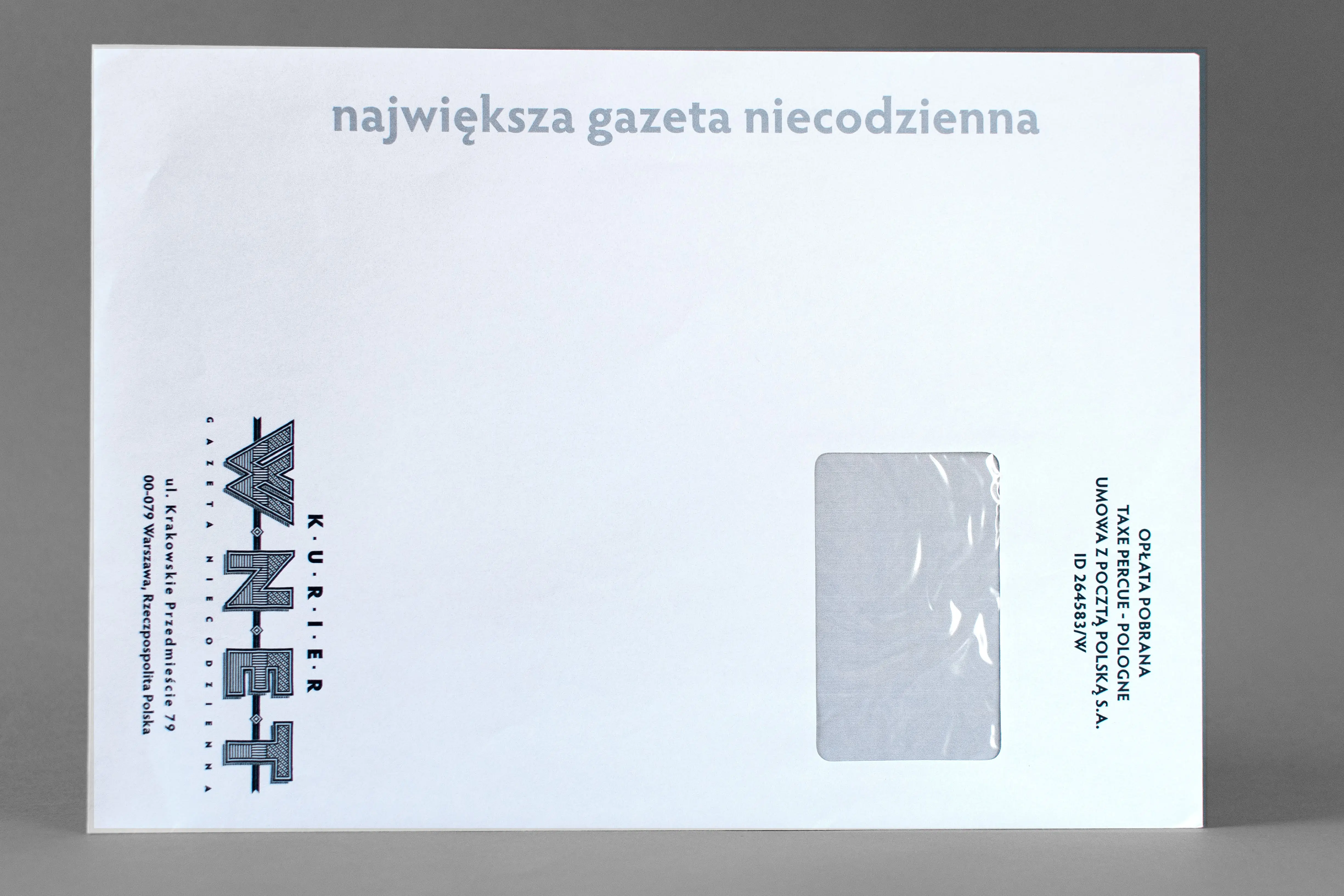 Zadruk wewnątrz koperty (poddruk) jest koloru niebieskiego lub szarego. Opcja ta zapewnia maksymalną dyskrecję korespondencji.