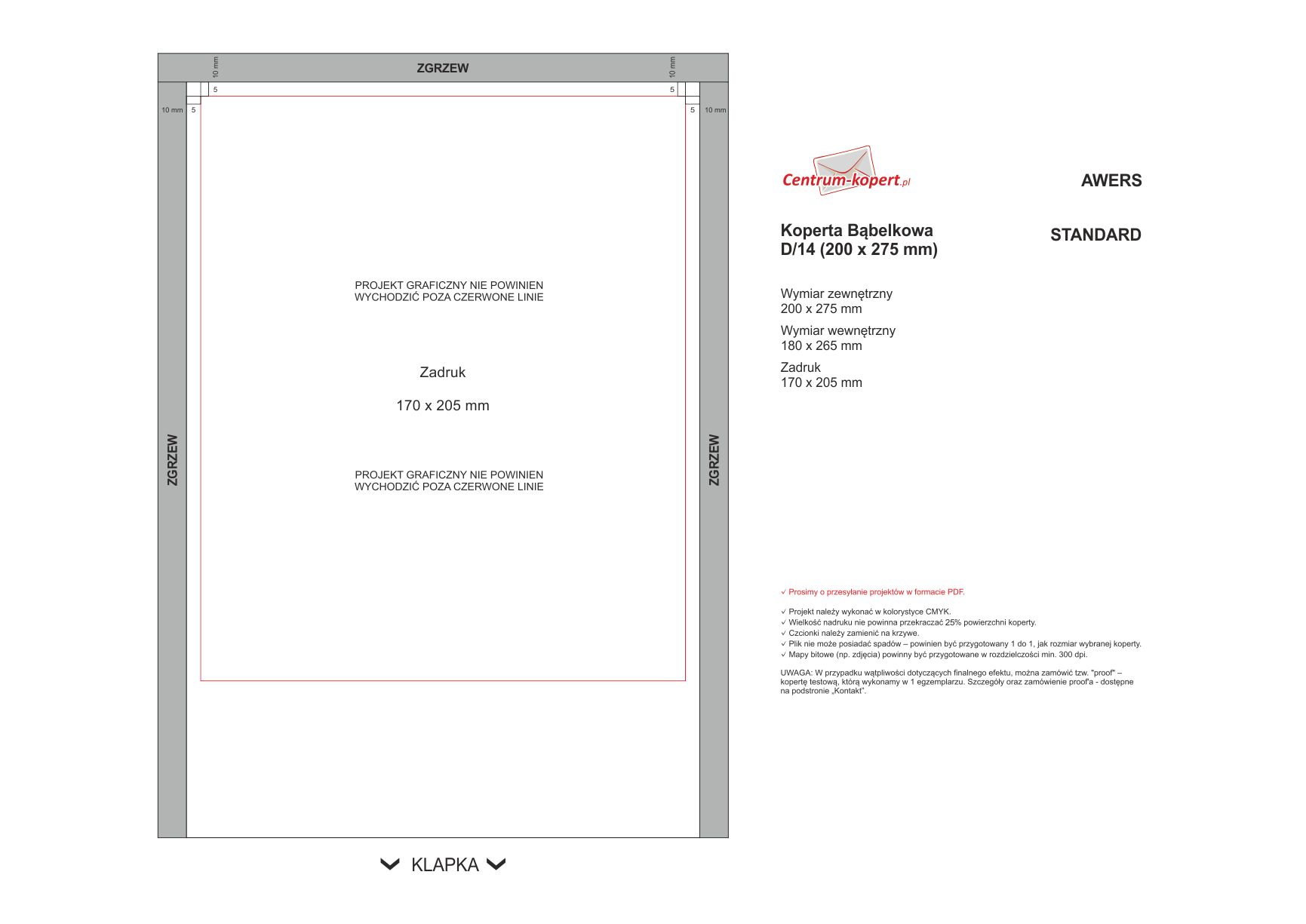 Jeśli chcą Państwo sami przygotować projekt - wystarczy skomponować plik według specyfikacji dostępnej na podstronie: Jak przygotować projekt graficzny koperty?