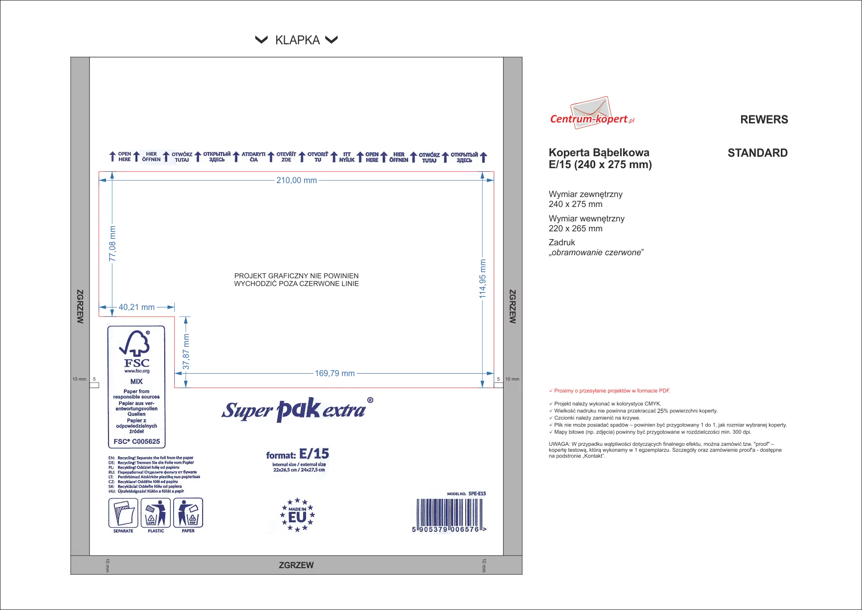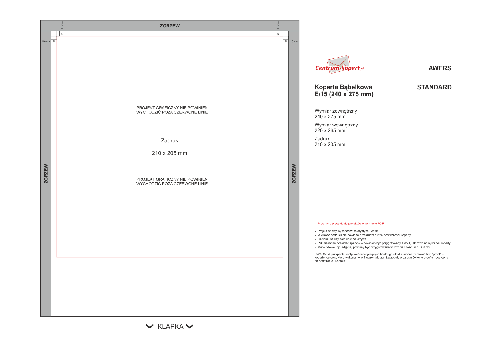 Jeśli chcą Państwo sami przygotować projekt - wystarczy skomponować plik według specyfikacji dostępnej na podstronie: Jak przygotować projekt graficzny koperty?