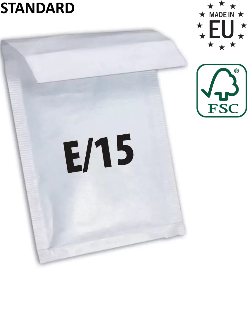 Dzięki swojej budowie z laminowanej folii z pęcherzykami powietrza, koperta bąbelkowa E15 zapewnia dodatkową ochronę przed uszkodzeniem, wstrząsami, wilgocią i innymi czynnikami, które mogą wpłynąć na bezpieczeństwo produktów podczas transportu.