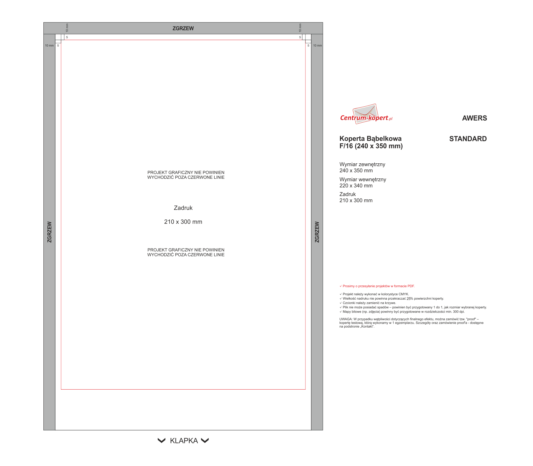 Jeśli chcą Państwo sami przygotować projekt - wystarczy skomponować plik według specyfikacji dostępnej na podstronie: Jak przygotować projekt graficzny koperty?