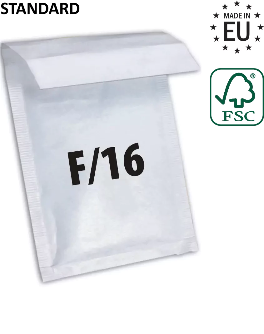 Dzięki swojej budowie z laminowanej folii z pęcherzykami powietrza, koperta bąbelkowa F16 zapewnia dodatkową ochronę przed uszkodzeniem, wstrząsami, wilgocią i innymi czynnikami, które mogą wpłynąć na bezpieczeństwo produktów podczas transportu.