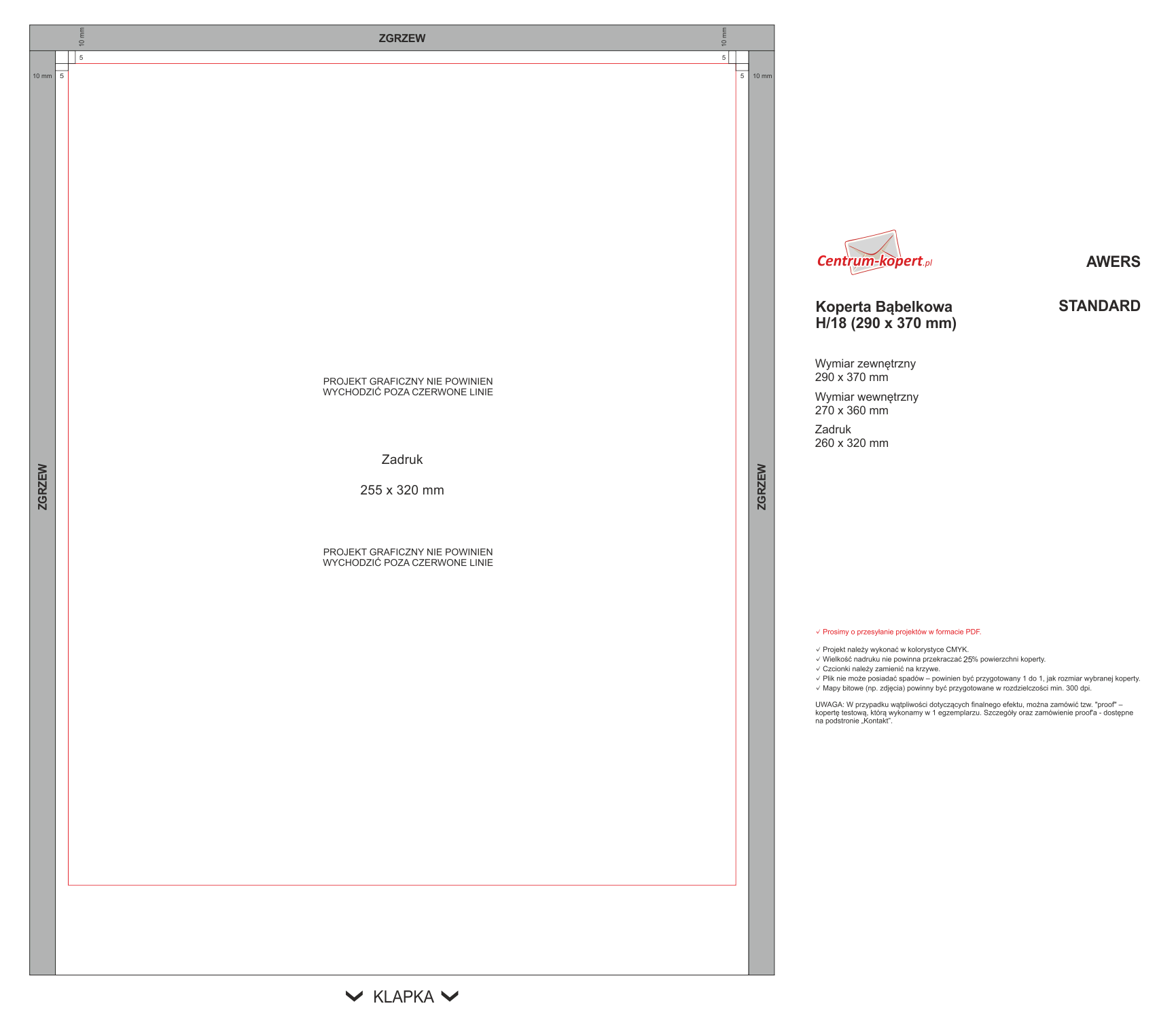 Jeśli chcą Państwo sami przygotować projekt - wystarczy skomponować plik według specyfikacji dostępnej na podstronie: Jak przygotować projekt graficzny koperty?