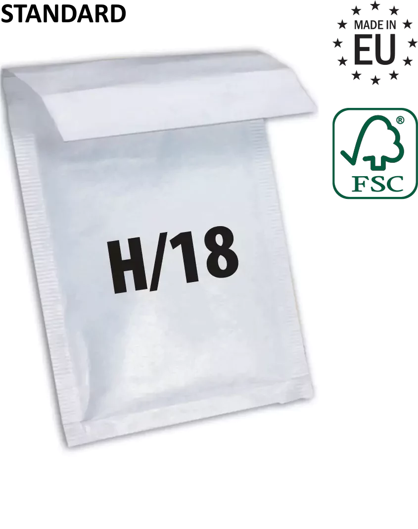 Dzięki swojej budowie z laminowanej folii z pęcherzykami powietrza, koperta bąbelkowa H18 zapewnia dodatkową ochronę przed uszkodzeniem, wstrząsami, wilgocią i innymi czynnikami, które mogą wpłynąć na bezpieczeństwo produktów podczas transportu.