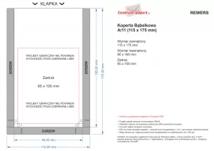 - Kopertę bąbelkową A/11 samoklejącą aktową z paskiem samoprzylepnym o gramaturze 80 g/m² oraz dowolny kolorowy nadruk według konfiguracji.